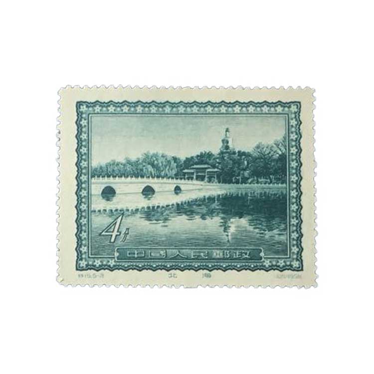 1956年6月15日,为了介绍首都北京悠久的历史和灿烂的文化,中华人民共和国邮电部发行一套《首都名胜》特种邮票,全套5枚。邵柏林设计。其中(106)于1957年2月20日发行。雕刻版。宋广增、吴彭越、林文艺、孔绍惠、高振字、李曼曾雕刻。齿孔14度。无背胶。邮局全张枚数70(7×10)。北京人民印刷厂营业分厂印制。