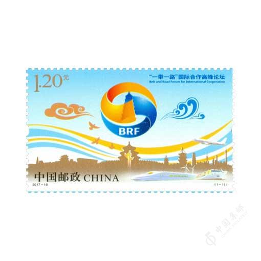 中国邮政定于2017年5月14日发行《“一带一路”国际合作高峰论坛》纪念邮票1套1枚。