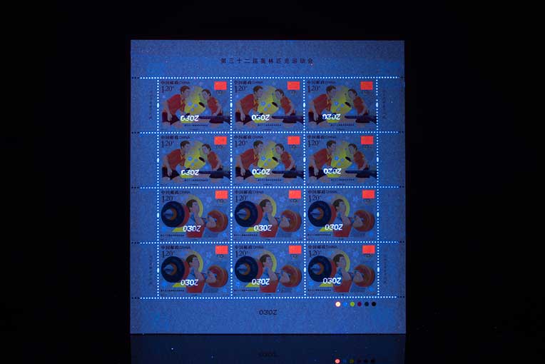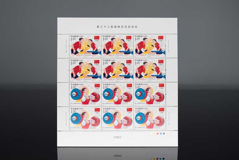 《第三十二届奥林匹克运动会》纪念邮票分别表现了乒乓球混合双打、男子举重。邮票画面展现了运动员在比赛中的精彩瞬间,艺术化地呈现了运动的拼搏与竞技之美、速度与力量之美。背景中的2021采用抽象化的几何图形呈现,并点缀樱花图案,画面虚实呼应、充满动感,烘托出运动会热烈的比赛氛围。