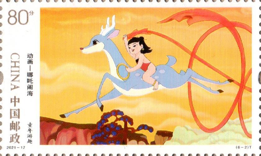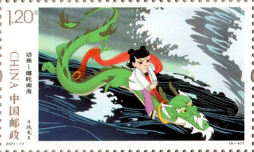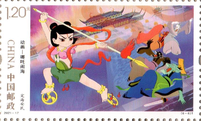 中国邮政定于2021年8月28日发行《动画——哪吒闹海》特种邮票1套6枚。详情如下: