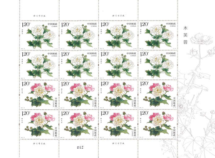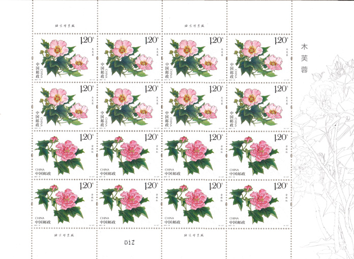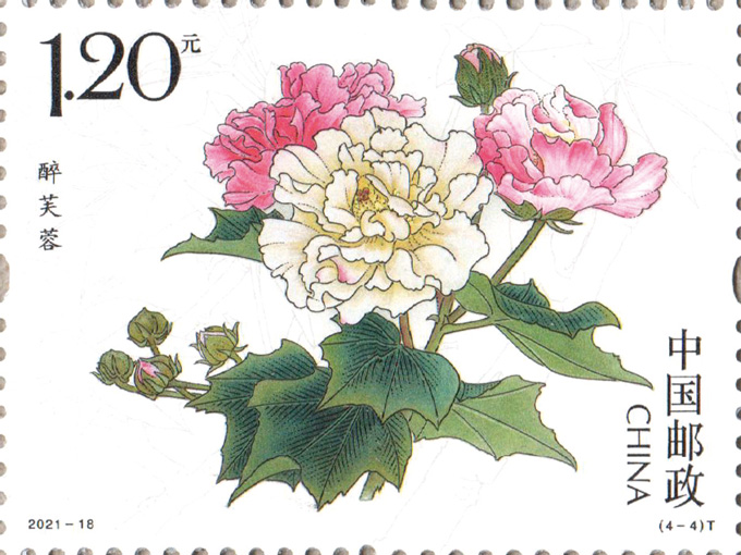 中国邮政定于2021年9月7日发行《木芙蓉》特种邮票1套4枚。