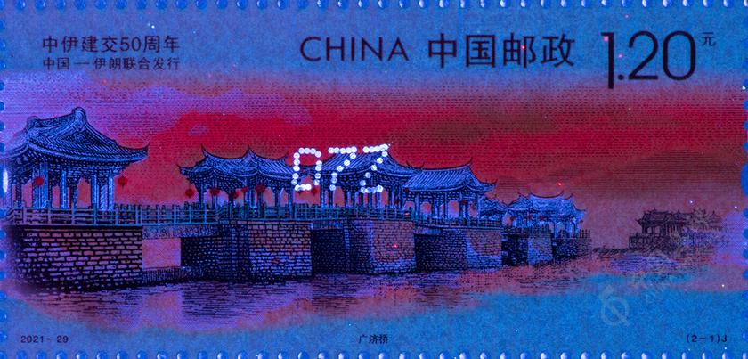 2021年是中华人民共和国与伊朗伊斯兰共和国建交50周年,为增进中伊两国人民之间的相互了解和友谊,中国邮政定于2021年12月11日发行《中伊建交50周年》纪念邮票1套2枚(与伊朗联合发行),邮票图案名称分别为:广济桥、郝居桥,全套邮票面值为2.40元,邮票计划发行数量680万套。