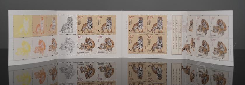 该套邮票小本票由王虎鸣设计。小本票画面设计匠心独运,通过延伸形神兼具的生肖虎形象,精彩呈现了“国运昌隆”与“虎蕴吉祥”的画面主题,并实现了“五个首次”:首次展示了生肖邮票叠色印刷、首次以四方连组成邮票内页、首次呈现左右折页形式、首次增加内页邮票荧光喷码、首次使用触感上光工艺。