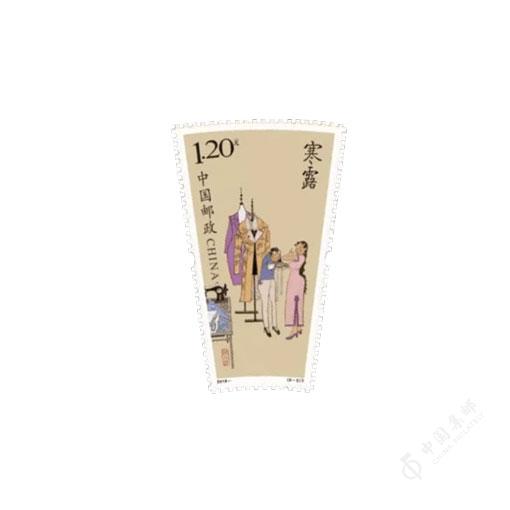寒露是二十四节气中的第17个节气。寒露节,全国大部分地区均已进入秋季,此时准备添置厚衣服是人们日常生活中一项普遍的活动。邮票表现了人们量体裁衣的生活场景。
