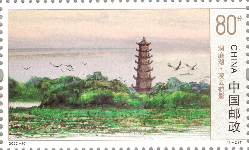 中国邮政定于2022年5月28日发行《洞庭湖》特种邮票1套4枚,小型张1枚。