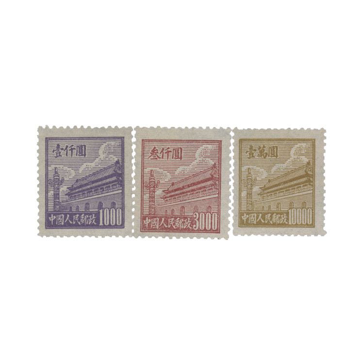 1950年6月9日发行天安门图案普通邮票(第二版),1套3枚。
