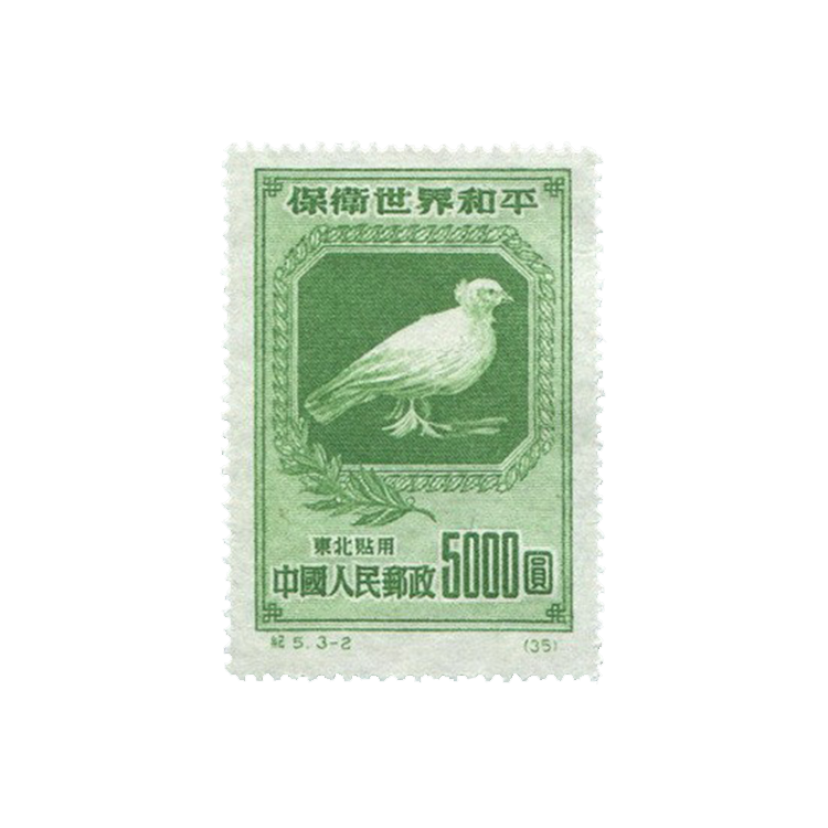 战争,给人类带来的灾难是深重的。世界上的两次全球性大战,人们记忆犹新。但第二次世界大战后,新的战争危险依然存在。正是在这种形势下,世界保卫和平大会应运而生。1950年8月1日,为了表达中国人民热爱和平的心愿,邮电部发行了《保卫世界和平(第一组)》东北贴用纪念邮票,发行印有“东北贴用”字样的邮票,面值为东北币值,限东北地区贴用。全套3枚。为适应集邮事业的发展需要,1955年1月10日发行再版票。