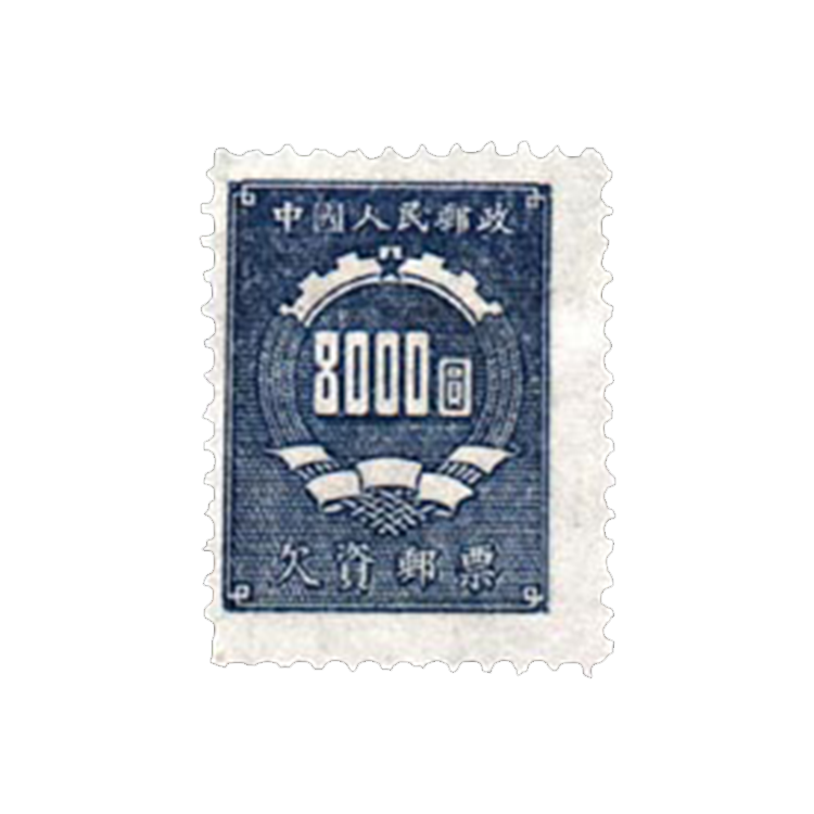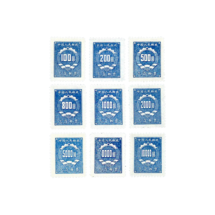 1950年9月1日新中国发行了第一套欠资邮票,1套9枚。