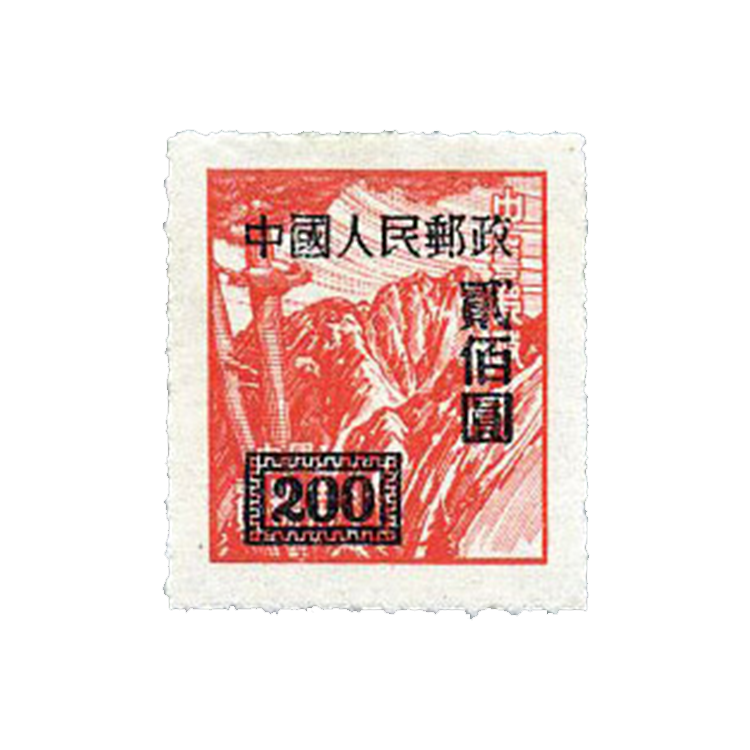 原票中第3枚为大东书局上海印刷厂印刷,其余为香港亚洲石印局印制。第一枚有连“民”字。1950年8月30日为通令公布日期,800圆面值邮票已于1950年6月下旬在京津地区发售使用。全套邮票在1952年4月22日停售,1952年5月15日停用,可在1952年5月15日到6月30日调换。(在新疆是1952年10月1日停用,1952年10月1日到12月31日调换。)