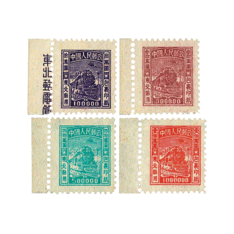 1950年,为了适应“邮政包裹”业务的需要,东北邮电管理总局发行包裹印纸(东北贴用)。东北贴用包裹印制邮票上左侧注有“东北贴用”,右侧注有“包裹印纸”字样。面值是东北币。1951年5月,东北地区开始兑换人民币,人民币与东北币币值比值是1:9.5。