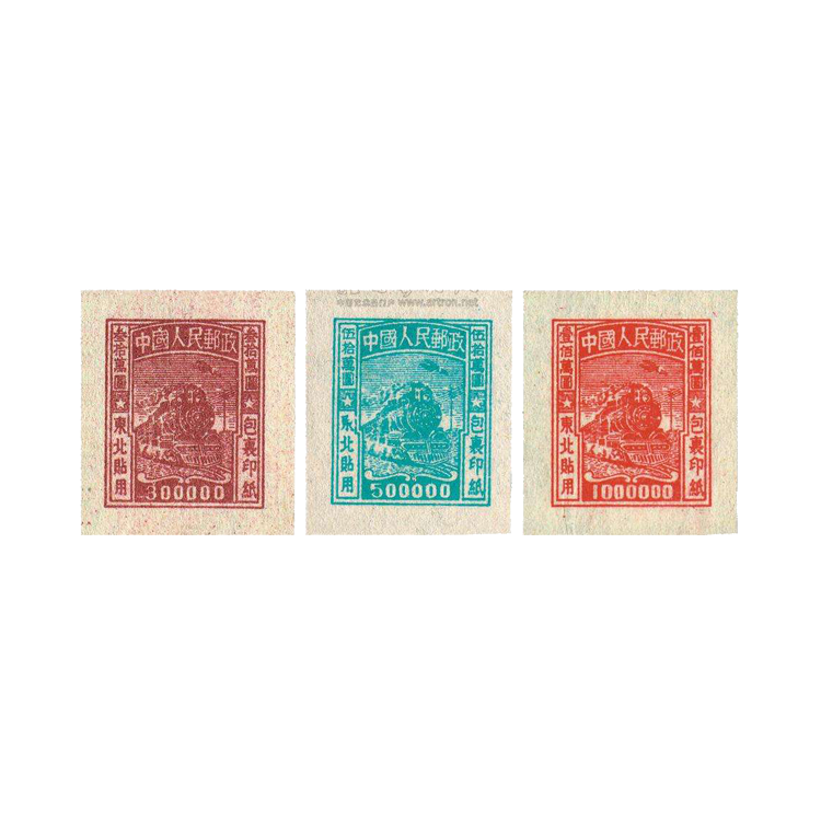 1950年,为了适应“邮政包裹”业务的需要,东北邮电管理总局发行包裹印纸(东北贴用)。东北贴用包裹印制邮票上左侧注有“东北贴用”,右侧注有“包裹印纸”字样。面值是东北币。1951年5月,东北地区开始兑换人民币,人民币与东北币币值比值是1:9.5。