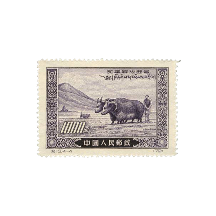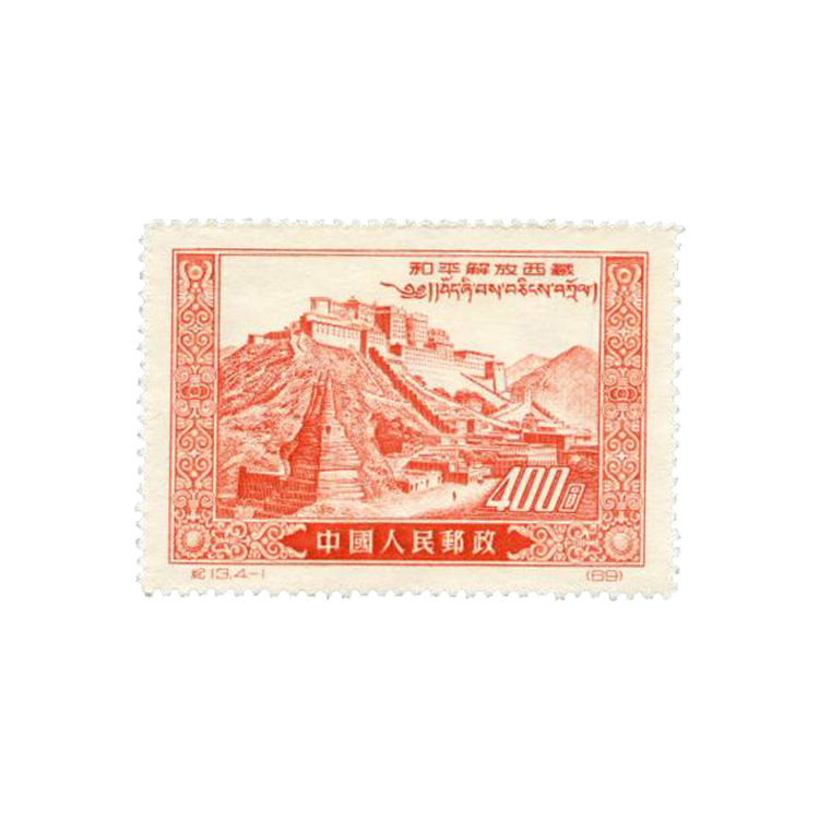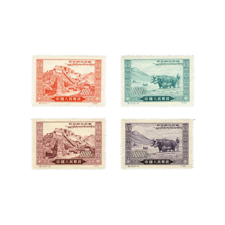 1951年4月22日,以阿沛·阿旺晋美为首席代表的西藏地方当局谈判代表团一行15人到达北京。从4月29日起,中央人民政府全权代表李维汉与西藏地方政府全权代表阿沛·阿旺晋美开始谈判,双方签订了《中央人民政府和西藏地方政府关于和平解放西藏办法的协议》。5月23日,朱德、李济深副主席和陈云副总理主持了签字仪式,西藏宣布和平解放。为纪念和平解放西藏,邮电部于1952年3月15日发行了这套邮票,1955年1月10日再版。