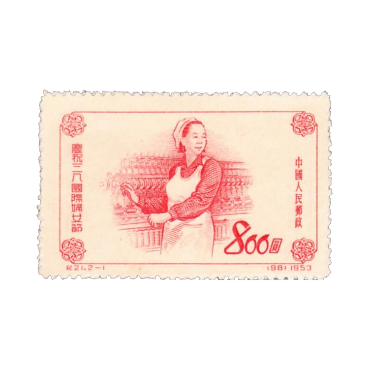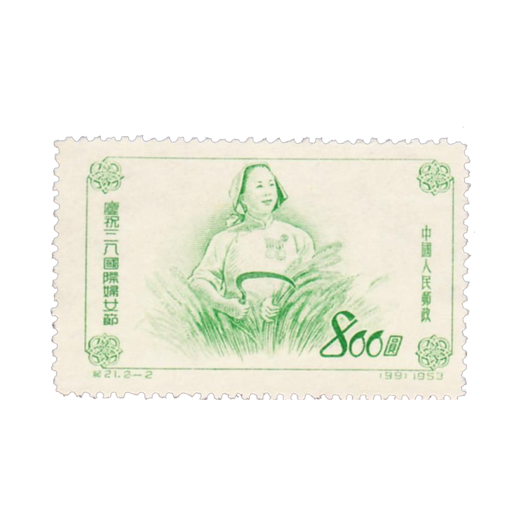 1953年3月8日,中国邮政为了纪念“三八”妇女节特发行此邮票,1套2枚。