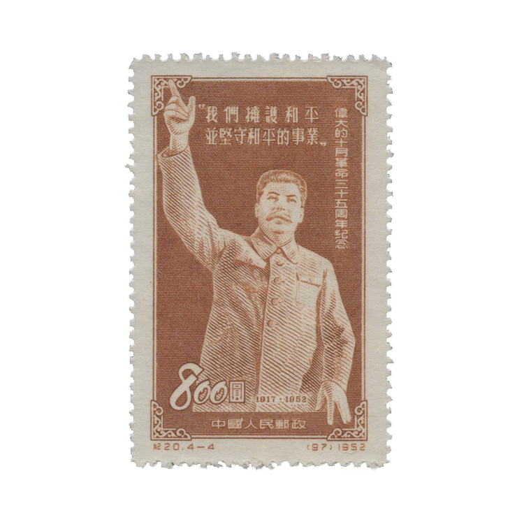 1953年10月5日邮电部为纪念苏联十月革命三十五周年发行的邮票,1套4枚。