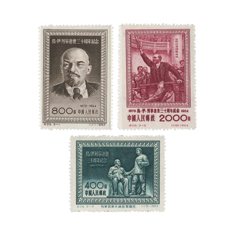 1954年6月30日,国家邮电部为纪念列宁逝世30周年发行了这套邮票,1套3枚。