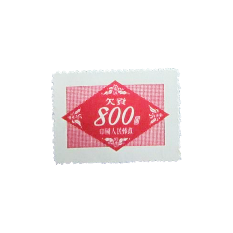 全套5种,画面均呈红色,主图相同,票幅为横长方形,内置菱形框,欠资面值居中,字体较大,突出醒目;“欠资”和“中国人民邮政”分列面值上下。这套票使用到1955年12月,从发行到停用仅一年多。1955年3月,币制变更,它便逐渐进入集邮领域,新票相对较多。