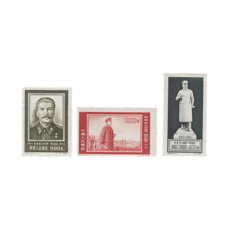 邮电部为纪念斯大林逝世1周年之际,于1954年10月15日发行了这套,1套3枚。