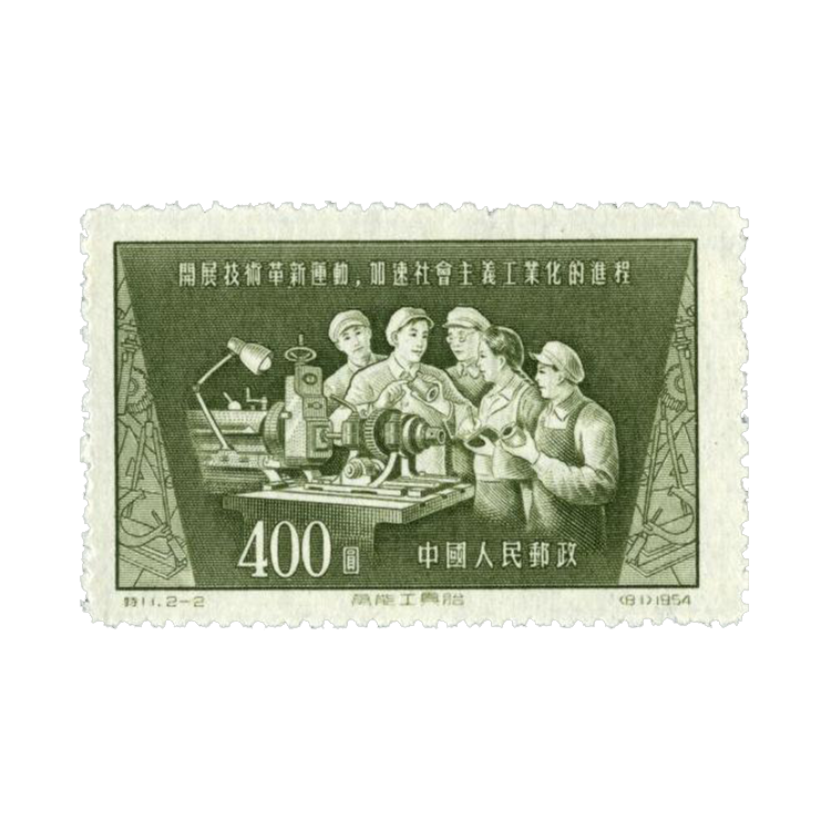 1954年12月15日,为了反映技术革新运动的成果,中华人民共和国邮电部发行一套《技术革新》特种邮票,1套2枚。