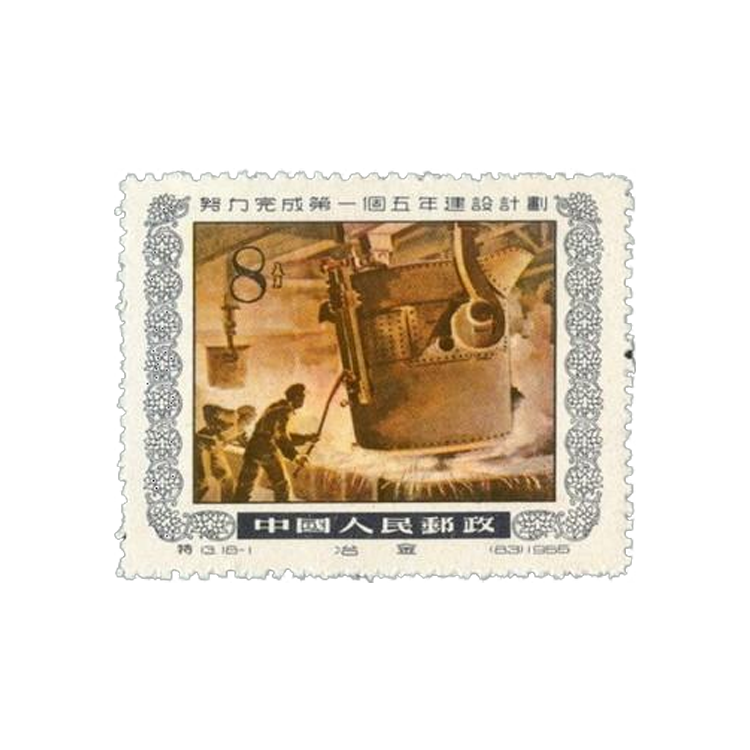 我国从1953年到1957年发展国民经济的第一个五年计划(1955年7月全国人大一届二次会议审查通过),到1956年提前一年基本完成。1957年底,全国超额完成了"一五"计划,社会主义经济建设取得了巨大成就。为了宣传和展示第一个五年计划的伟大宏图,邮电部发行了这套特种邮票。
