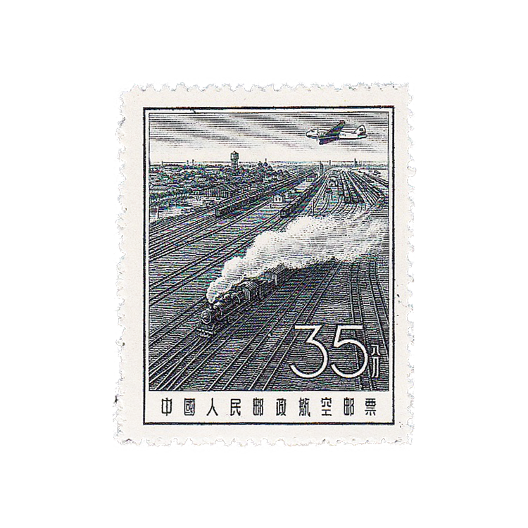 新中国交通运输事业有了巨大的发展,中国人民邮政于1957年9月20日发行了第二套航空邮票。本套航空邮票选择飞机、汽车、火车、轮船作为图案题材。作为航空邮票标志,各枚邮票的右上角均有飞机在天空中飞翔。