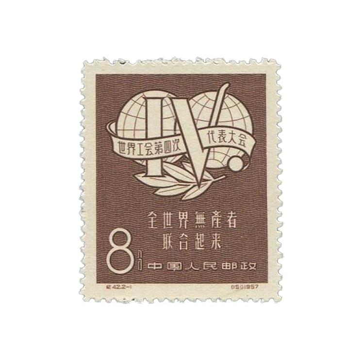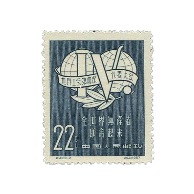 • 邮电部为了庆祝世界工会联合会的召开,在会议开幕前夕,1957年9月30日发行了《世界公会第四次代表大会》邮票。1套2枚。