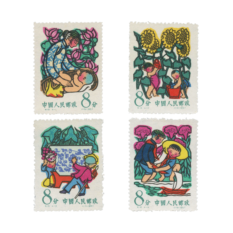 1958年6月1日,邮电部发行了《儿童》邮票,1套4枚。