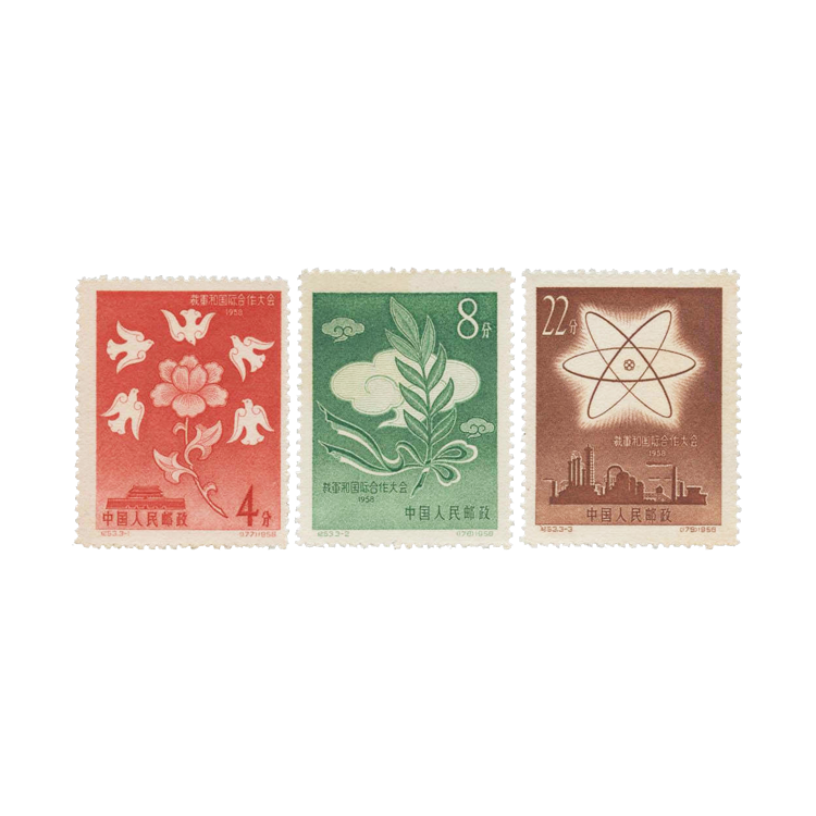 • 1958年7月20日,为纪念载军和国际合作大会的召开,邮电部发行了 《载军和国际合作大会》纪念邮票,1套3枚。