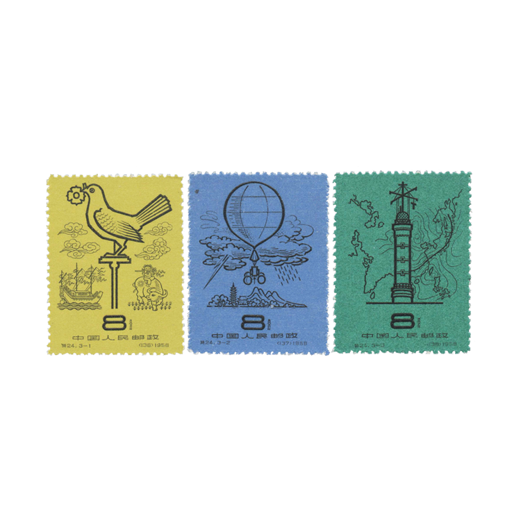 • 1958年8月25日,邮电部发行了《气象》特种邮票,1套3枚。