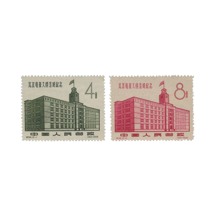 1958年9月29日,为祝贺北京电报大楼的建成,邮电部发行了《北京电报大楼落成纪念》纪念邮票,全套2枚。