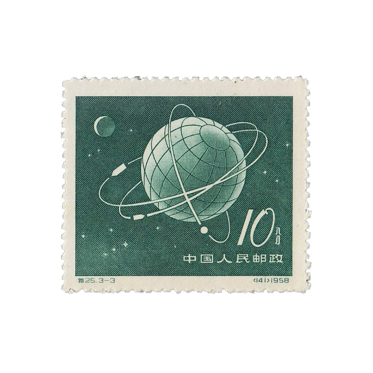 1958年10月30日,为了宣传苏联成功发射人造地球卫星的意义,中华人民共和国邮电部发行一套《苏联人造地球卫星》特种邮票,全套3枚。孙传哲设计。雕刻版。孔绍惠、高品璋、孙鸿年雕刻。齿孔14度。无背胶。邮局全张枚数110(10×11)。北京人民印刷厂印制。