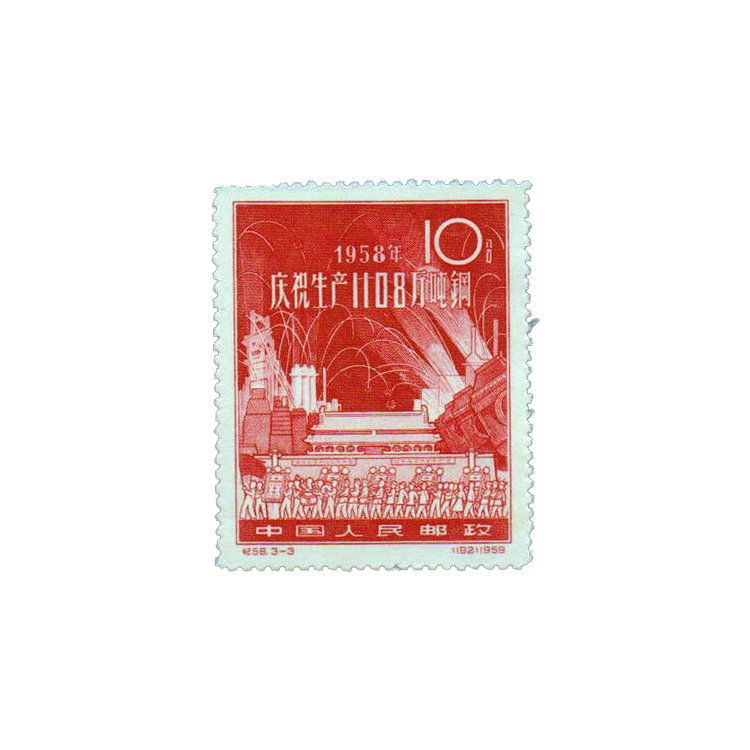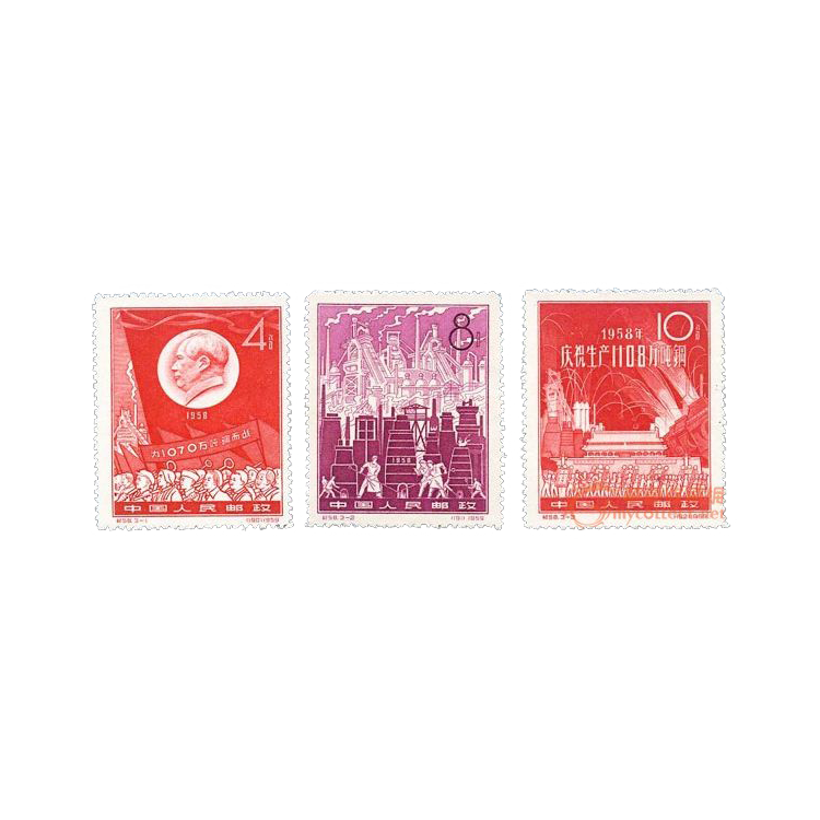 在1959年2月15日邮电部发行了这套“一九五八年钢铁生产大跃进”纪念邮票。1套3枚。