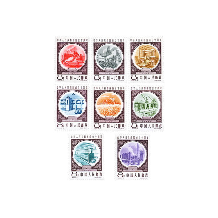 《中华人民共和国成立十周年(第三组)》纪念邮票,是1959年国庆十周年发行的系列邮票的第三组,1959年10月1日发行,全套8枚。