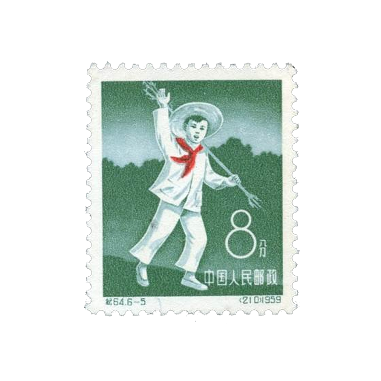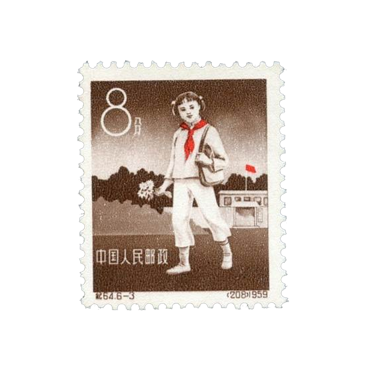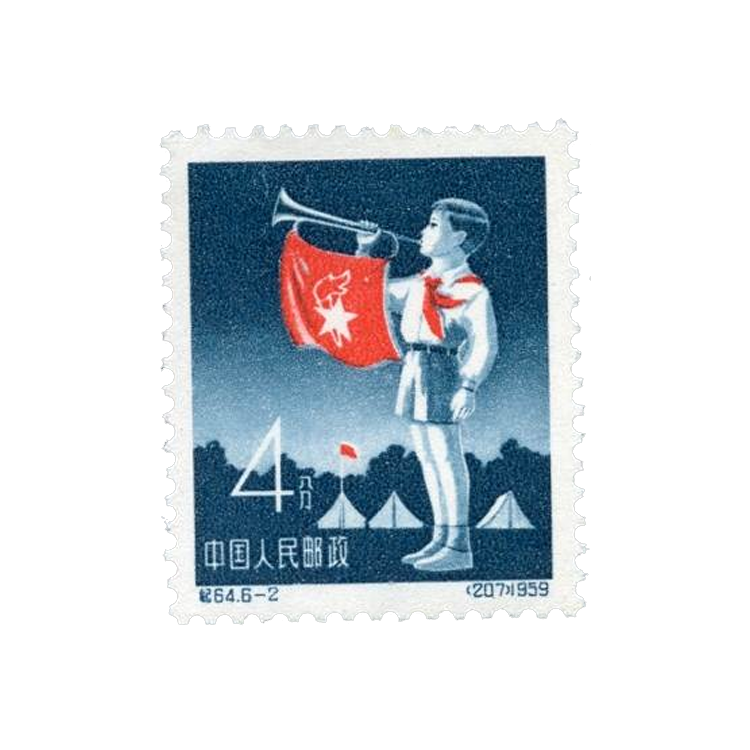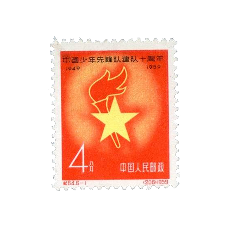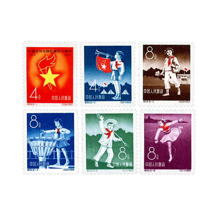 1959年11月10日,为纪念中国少年先锋队建队十周年,邮电部发行了《中国少年先锋队建队十周年》纪念邮票,1套6枚。