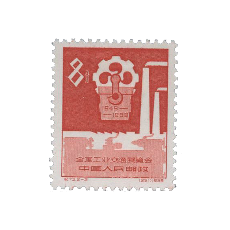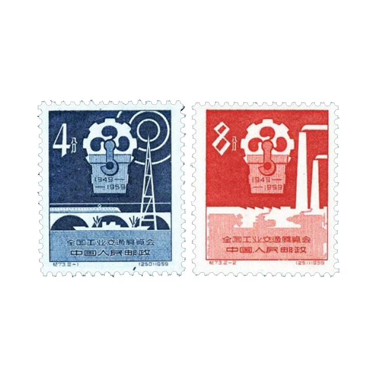 • 1959年12月1日发行,为庆祝第二次全国工业交通展览会召开,邮电部发行了此纪念邮票,1套2枚。