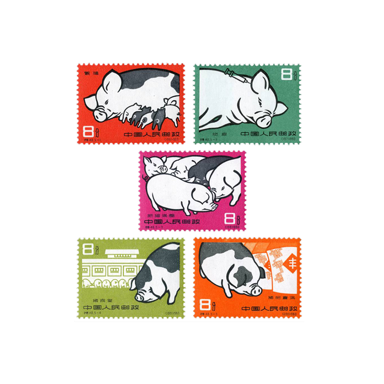 • 1960年6月15日,发行了《养猪》,1套5枚。