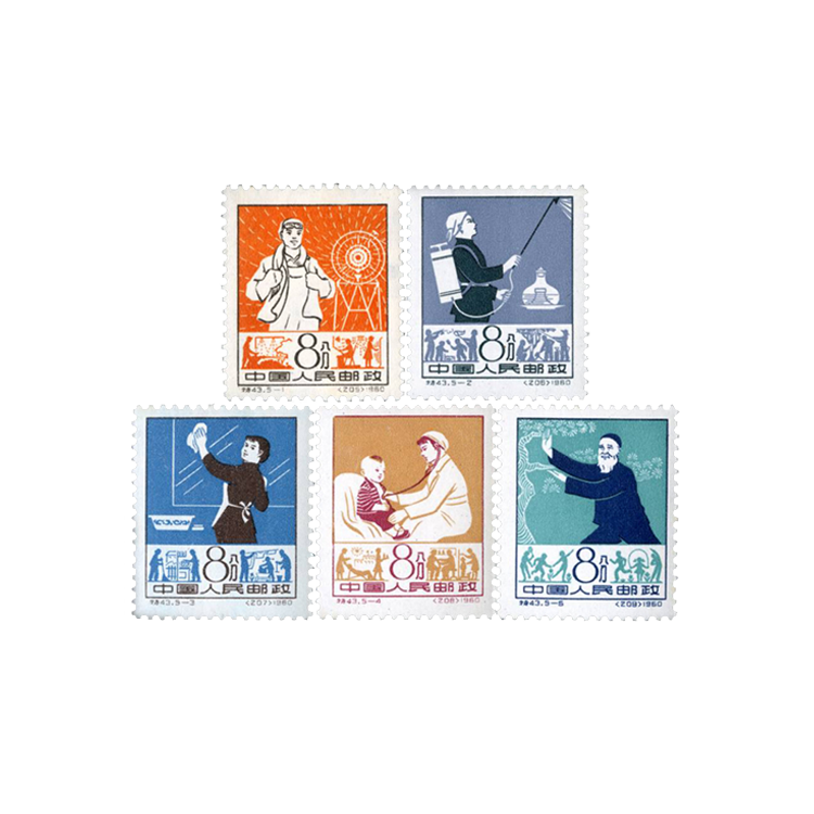 为了宣传这一爱国卫生运动,我国于1960年9月10日发行了“爱国卫生运动”特种邮票,编号T43,全套5枚。分别以改善工人劳动条件的“厂矿卫生”、喷药杀虫的“除四害”、搞好家庭清洁卫生的“讲卫生”、医生给儿童检查身体的“预防疾病”和老人在打拳的“锻炼身体”为图案,反映了当时爱国卫生运动的内容和特点。