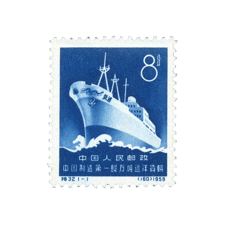 • 1960年12月15日邮电部为了纪念中国制造第一艘万吨远洋货轮而发行,全套1枚。