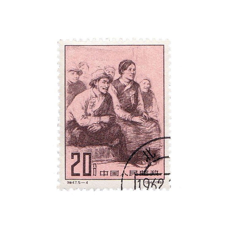1961年11月25日,为纪念西藏和平解放10周年,反映西藏民主改革的伟大胜利和西藏的新面貌,邮电部发行了《西藏人民的新生》特种邮票,全套5枚。