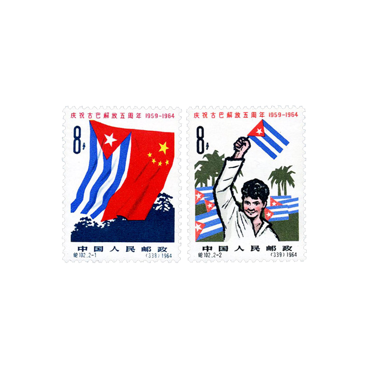 1964年1月1日,为庆祝古巴解放五周年和颂扬中古友谊,邮电部发行了《庆祝古巴解放五周年》纪念邮票,全套2枚。