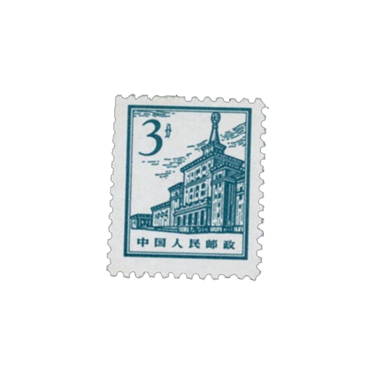 北京建筑图案普通邮票发行于1964年6月17日,属于胶板,齿数为p11.5×11,邮票规格为21×25毫米,整版邮票共有200枚,由万维生设计而成,在北京邮票厂印刷。这一组北京建筑邮票分别以天安门,人民大会堂军事博物馆,中国革命历史博物馆为图案。