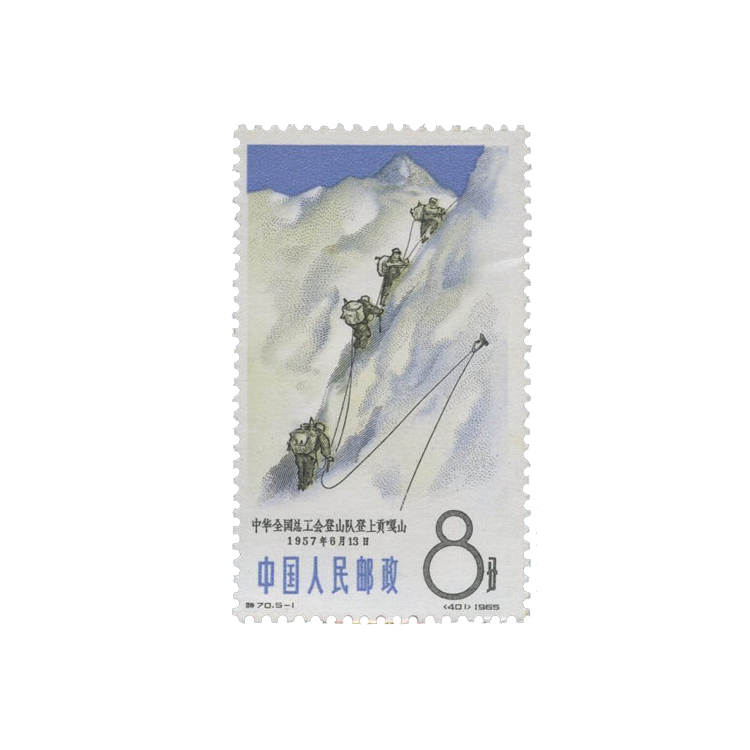 1965年5月25日,为宣传我国登山运动的巨大成就,邮电部发行了《中国登山运动》特种邮票,全套5枚。邮票设计者为万维生,由北京邮票厂印制。