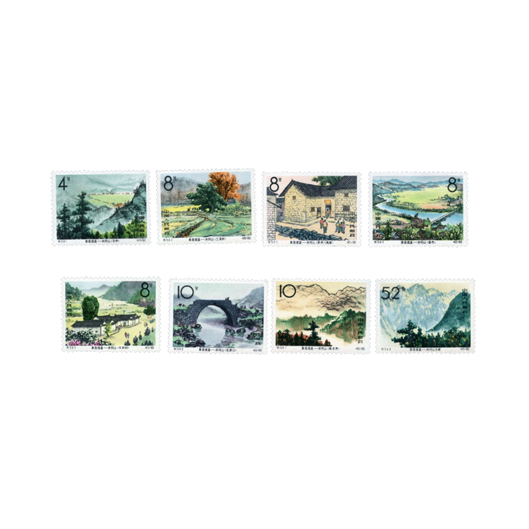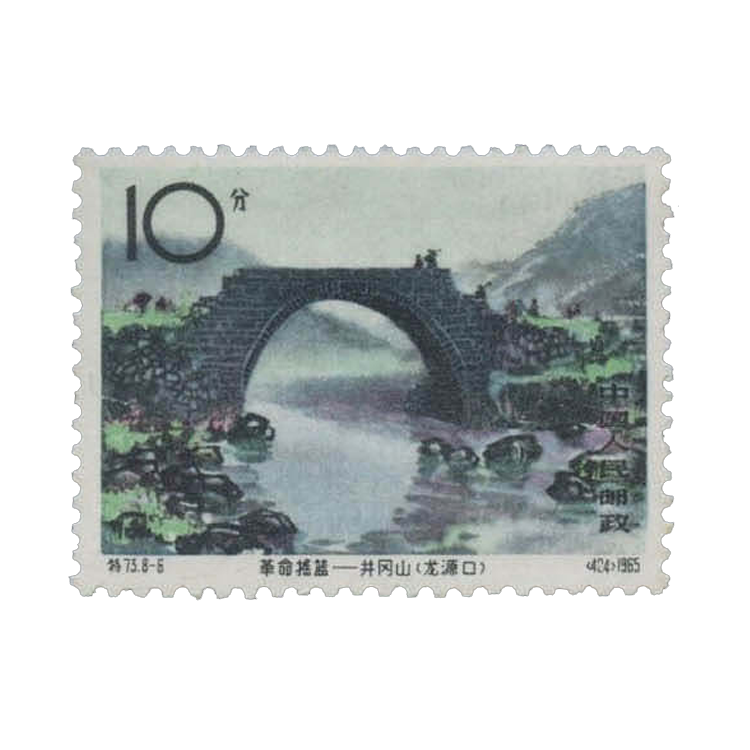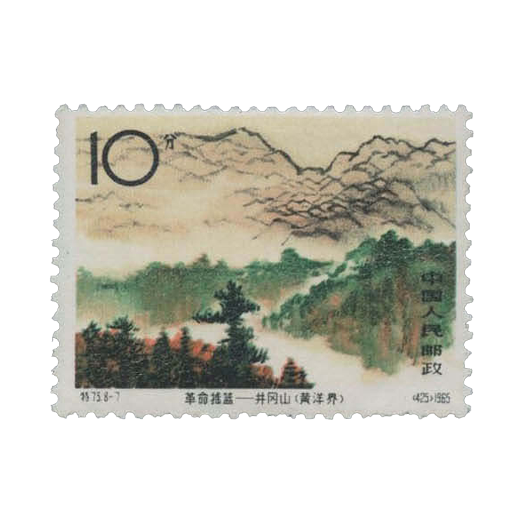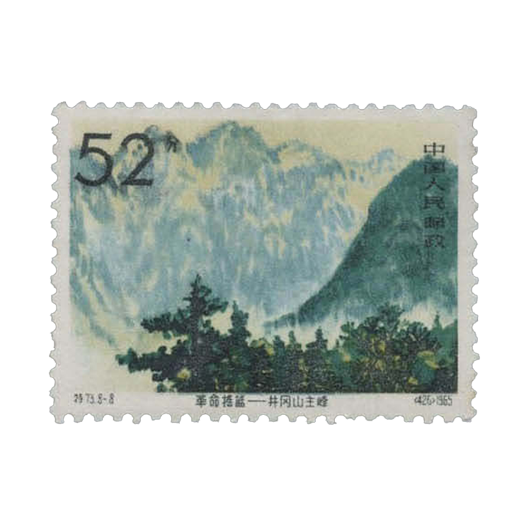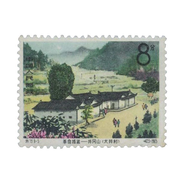 邮电部于1965年7月1日发行了这套特种邮票。图分别为茨坪、三湾村、茅坪八角楼、砻市、大井村、龙源口、黄洋界、井冈山主峰。