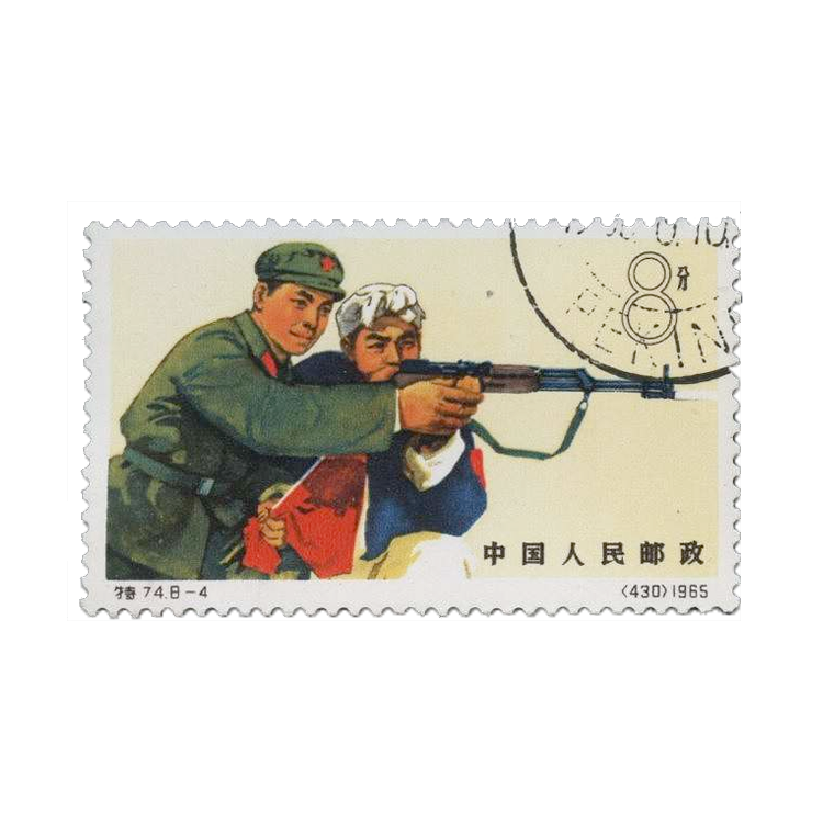 在中国人民解放军建军38周年之际,邮电部发行了这套特种邮票,8幅画面均采用了当年的宣传画进行设计