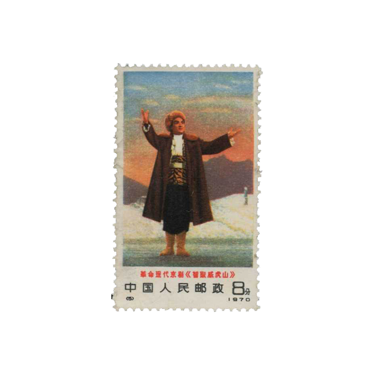 1970年8月1日,正值中国人民解放军成立43周年,中国邮政总局为庆祝这一节日,结合《智取威虎山》饱满的人物形象及人物事迹,特设计发行了这一套邮票,总共6张邮票,分别发行了3000万枚。