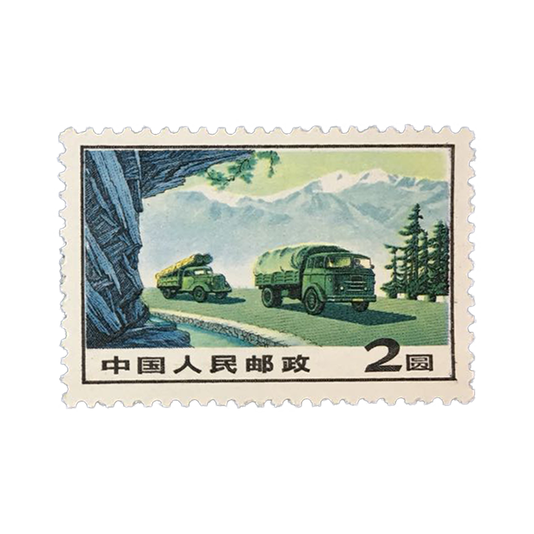 随着我国该逐渐改善交通运输网,技术装备也在不断升级,运输效率在建国不久就有了明显的提升。随着公路建设和石油业的发展,公路运输的地位渐渐也追上了铁路运输,负担的客货运量也在一直提升。两者都是构成我国交通运输的重要支柱。而这套邮票一共两枚,一枚就是铁路运输,展现了一辆正在形式的旅客列车。而另一枚则是公路运输,展示了一辆正在雪山公路上行驶的汽车。