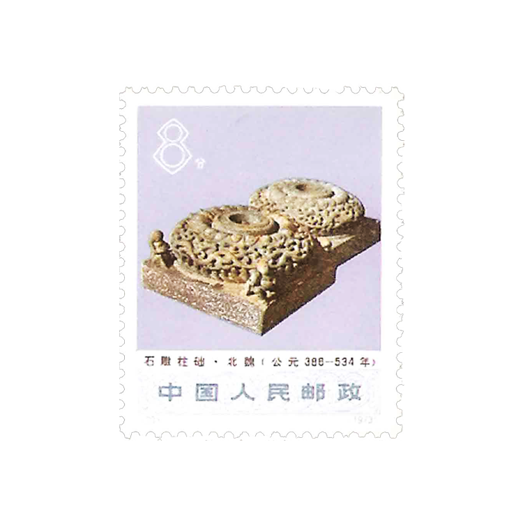 石雕柱础:1965年山西大同市东郊石家村北魏司马金龙墓出土。屏风柱座,上部为扁鼓状,中部为柱孔,四周高浮雕蟠龙和山形,下部为方座,浮雕忍冬云纹及使乐童子,座四角各立雕一使乐童子。柱础造型优美,雕工精细,具有雄浑、华丽而又刚劲的装饰风格。