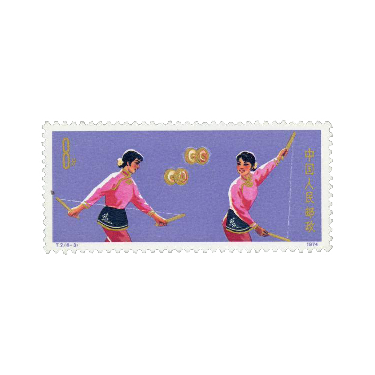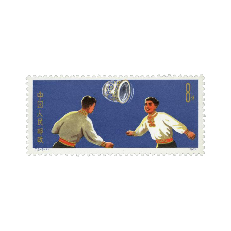 (6-3)抖空竹:两位女杂技员轻松嬉戏,神态自如。抖空竹原是庭院游戏,后经加工提高,有了竞技性质,并成为传统的杂技项目。