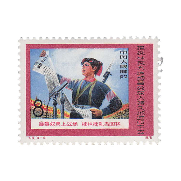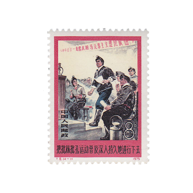 1975年8月20日,为配合“批林批孔”运动,邮电部发行了《把批林批孔运动普及深入持久地进行下去》特种邮票,全套4枚。