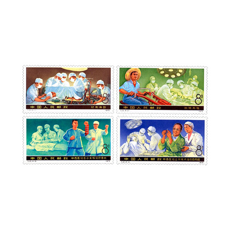 1976年4月9日,为了宣传中国医疗卫生科学取得的突出成就,中华人民共和国邮电部发行一套《医疗卫生科学新成就》特种邮票,全套4枚。