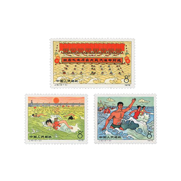 1976年7月16日,为了纪念毛泽东同志“七·一六”畅游长江10周年,中华人民共和国邮电部发行一套《到大江大海去锻炼》纪念邮票,全套3枚。
